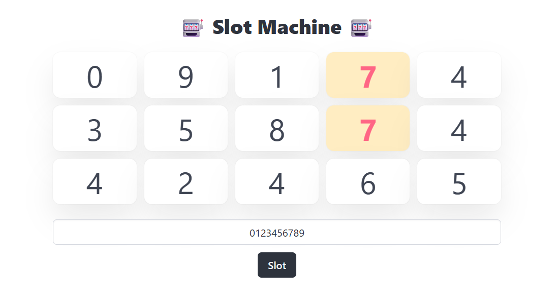 77٧۷߇७৭੭૭୭を入力してスロットを回すとFlagが得られた。
